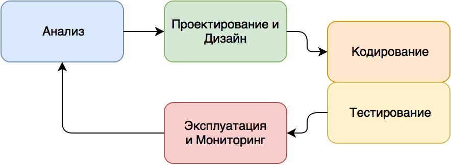 Прежде чем мы перейдем к разбору артефактов и извлечению из них полезных данных, давайте рассмотрим весь процесс разработки целиком. Для простоты мы выберем линейный процесс разработки, так как при использовании циклических или спиральных методологий возникают те же самые классы задач, только последовательность их выполнения может отличаться.